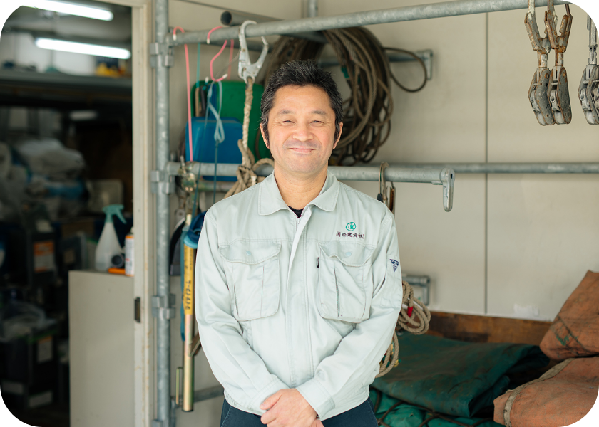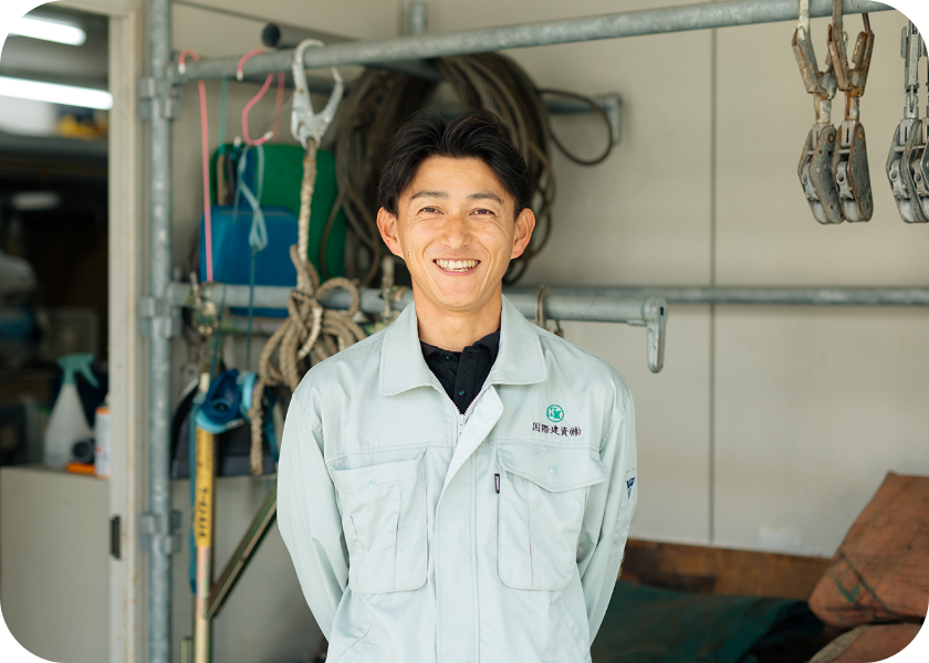 前職では工事そのものの作業を行っておりましたが、国際建資に入社してからはその管理を任されています。
